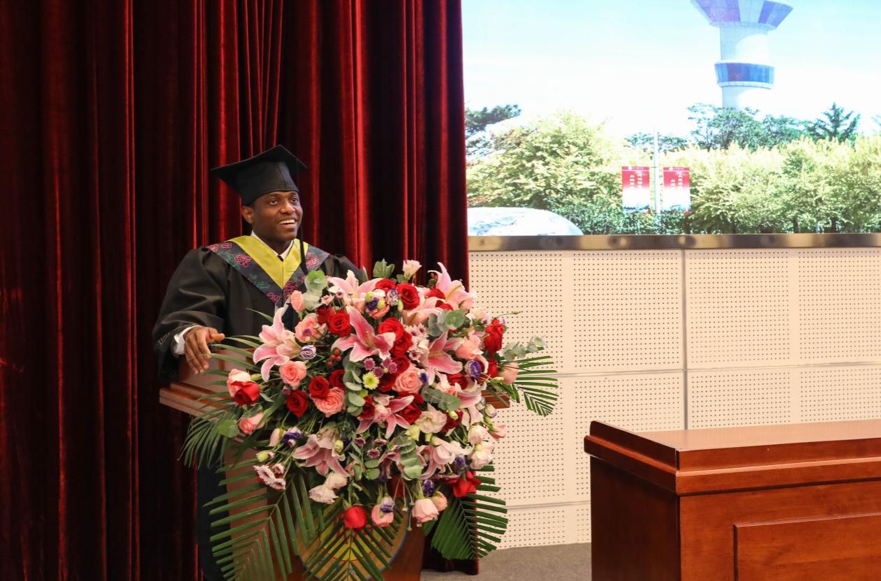 计算机与信息工程学院SIGA ESTEVAO同学作为毕业留学生代表,在发言中表达了对天农的深厚情感,感恩母校的悉心培育。