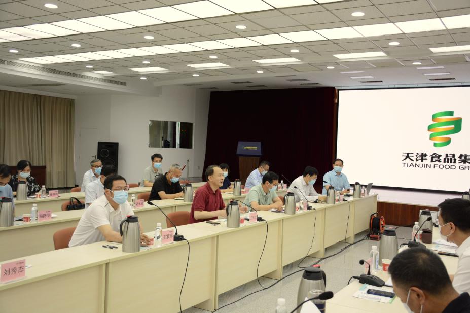 5月26日下午,校党委书记王延文,校党委常委、副校长(主持工作)金危危,校党委常委、副校长王繁珍,校党委常委、副校长张民赴天津食品集团开展交流座谈。天津食品集团党委副书记、总经理赵国荣,党委副书记、工会主席王增春,副总经理张庆东,总经理助理戈立新出席座谈会。