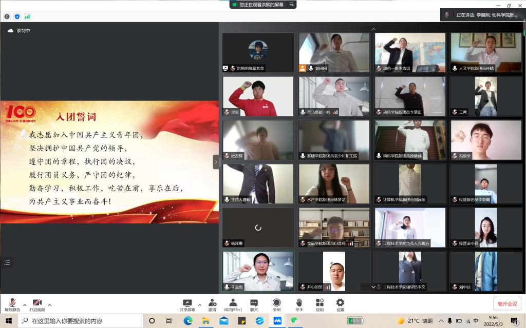 5月3日上午,365官网开展“喜迎二十大、永远跟党走、奋进新征程”主题团日示范活动,引领广大团员青年认真学习贯彻习近平总书记在中国人民大学考察时的重要讲话精神,思源奋进,不负韶华,将爱党爱国爱农爱校情怀体现在行动中,扎实践行当代青年的使命担当,在伟大实践中建功立业、实现梦想。