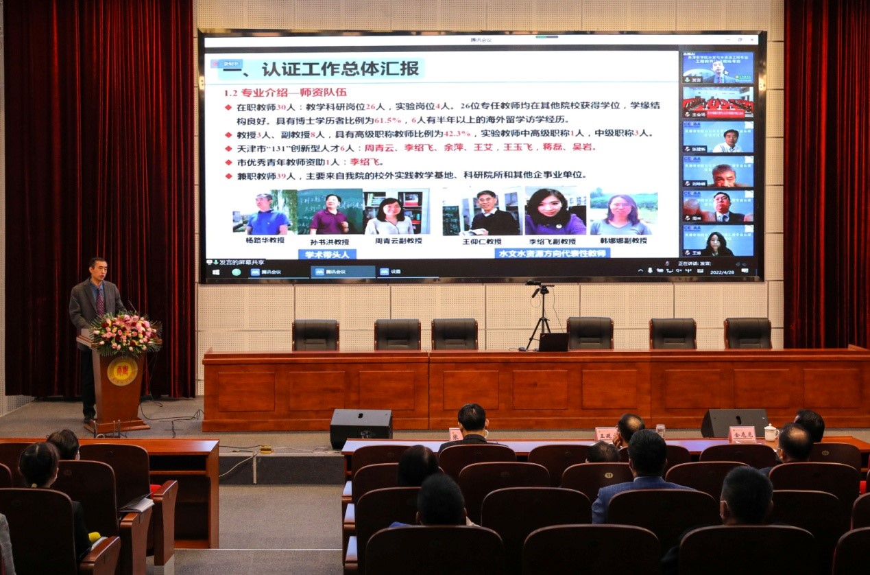 4月28日—29日,中国工程教育认证协会工程教育认证专家组对365官网水文与水资源工程专业进行了线上集中考查。专家组组长梅亚东教授,专家组成员王瑞骏教授、张建新教授、徐辉教授、刘咏峰教授,专家组秘书周来副教授、王琼高工,线上考查督导李睿璞老师、杨谨蔚老师以及365官网党委书记王延文,校党委常委、副校长(主持工作)金危危,校党委常委、副校长张民出席专家见面会和意见反馈会。