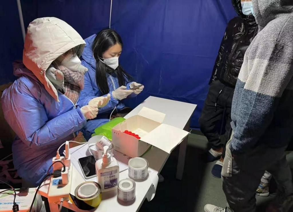 她说:“对于社区居民,大家无一例外都要进行检测,大筛是个极其艰巨的任务,寒风刺骨,志愿者们一直在外面连续工作十二小时以上,但只要有工作都会抢着做”。