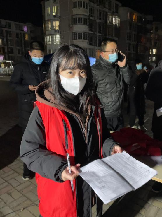 自天津全员核酸检测消息一出,2019级水文与水资源工程2班班长王欣悦同学便积极向所在社区报名参加全员核酸检测志愿服务。她主要负责的是小区单元家庭检测的联系指导工作及协助其他工作人员维持核酸检测现场的秩序。当她到社区接到分配任务时就已经体验到了紧迫感,大家仿佛都在与时间赛跑,都在做着各种各样有意义的事情。