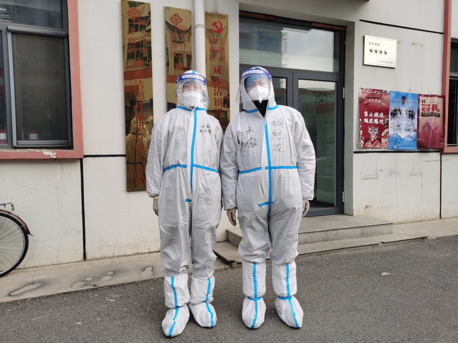 校疫情防控突击队成员、党委组织部干部科副科长王祥(右)