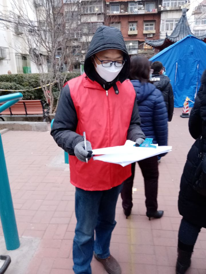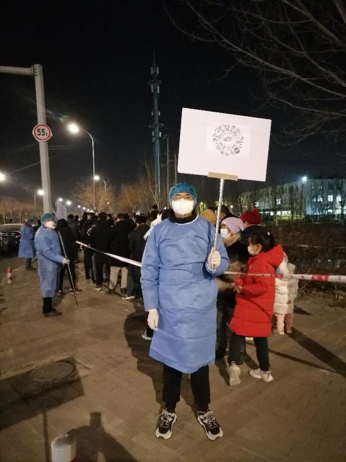 工程技术学院教师李阳同志居住的平湖西里社区人口多,老龄化比重大。第一次全员核酸筛查时,他发现人手不够,就积极申请加入了社区志愿者队伍,并响应学院号召参加了学校的抗疫突击队,随时等待上级的召唤。1月15日,他接到社区电话通知后,积极参与社区第三次核酸筛查的“敲门行动”。在他的努力下,近30人完成了核酸检测,其中2位为高龄老人。第四次全员核酸检测,李阳同志提前一天就接到社区电话,并在20日5:30到岗。为了落实应检尽检,他在辅助维持秩序的同时,积极承担了信息登记工作,包括检测人员居住地址、入户检测需求、延迟检测等内容,持续工作到最后一名检测人员离场,工作时间近7个小时。他说:“在这一过程中,志愿者既是服务提供者,也是一个社会实践的感知者。我愿意贡献自己的微薄力量,与大家一起应对这突如其来的疫情。”