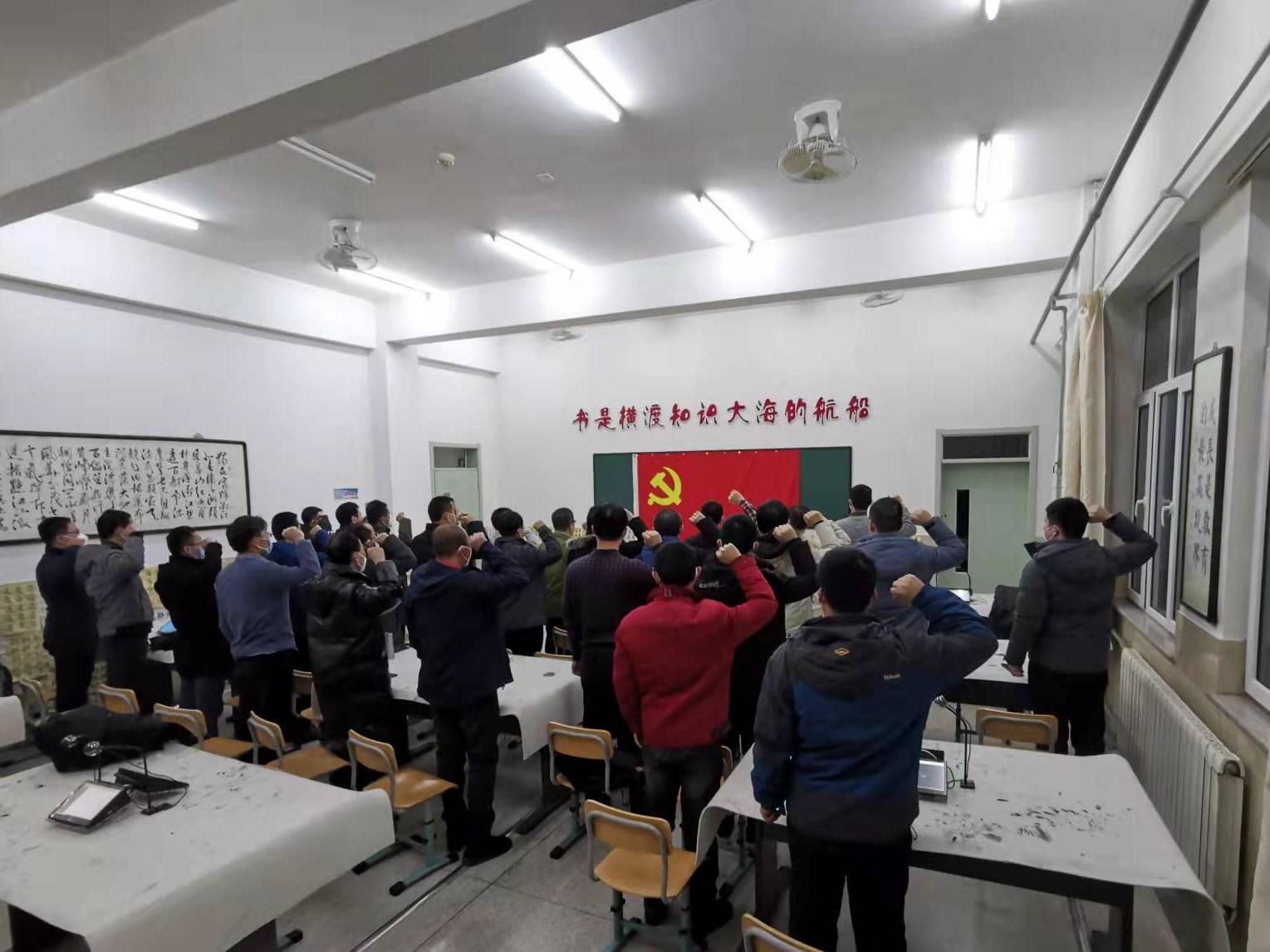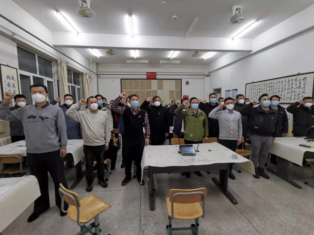 1月21日,支部召开第一次党员大会。会上,28名党员面对党旗宣誓,重温入党誓词,参加宣誓人员佩戴党徽,整齐列队,面向党旗肃立。“我志愿加入中国共产党,拥护党的纲领,遵守党的章程……”在支部书记田勇同志的带领下,大家郑重举起右拳,高声宣读入党誓词。通过重温入党誓词,大家再一次接受了心灵的洗礼,再一次受到了党性的锤炼,坚定战胜疫情的信心和决心。