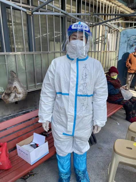 1月8日以来,一场突发疫情袭击津城。作为一名教育系统下沉干部,她积极参与社区的疫情防控工作,参加了1月15日的第三轮核酸筛查工作。寒冬腊月的清晨6点钟天还没亮,她就已经准时到达工作岗位,穿上“大白”的那一刻,她倍感使命光荣、责任重大。工作中,她顾不上寒风的侵袭,也顾不上喝一口热水,她以饱满的热情连续工作了6个小时,与医务人员和社区工作者一起,组织社区居民有序等候排队、体温检测、检录信息等。之前筛查要排队3小时,现在全程下来排队不超20分钟,极大提高了社区居民的满意度。当大爷大娘们说出“辛苦啦,谢谢你们”时,她的内心感到无比的温暖,她常说的一句话就是“这是我们党员应该做的!”