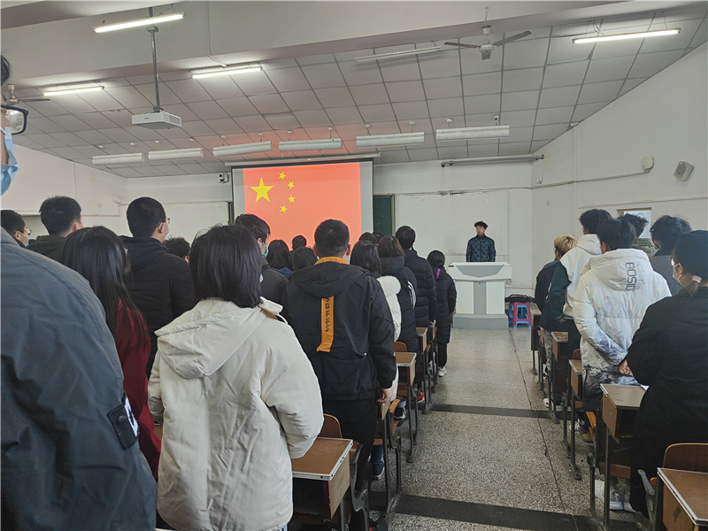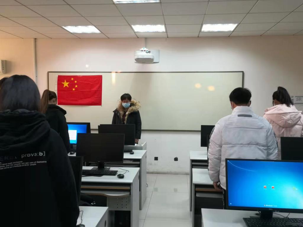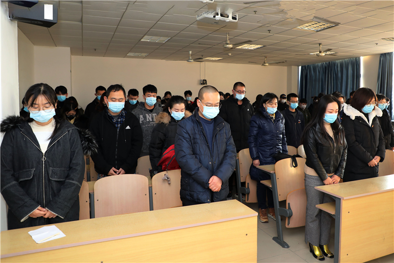在教室、图书馆、办公室等各个分会场的师生也同步进行了高唱国歌、默哀纪念活动。