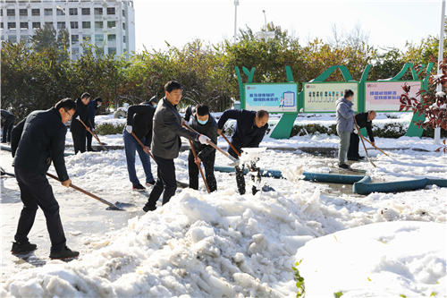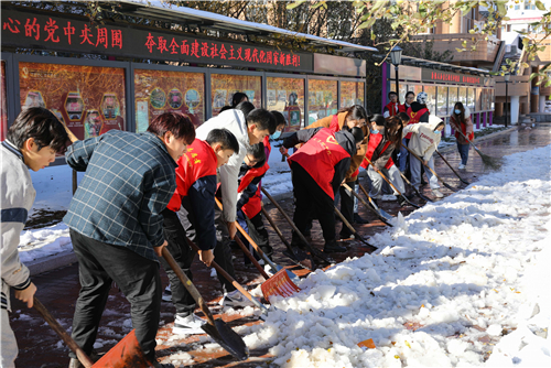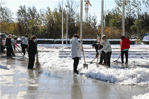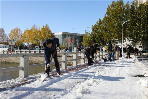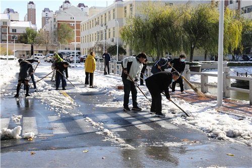 11月8日上午一到校,校党委书记王延文等校领导立即带领全校师生员工投入到校园除雪工作中,用实际行动努力保证校园师生出行安全和正常教育教学秩序。