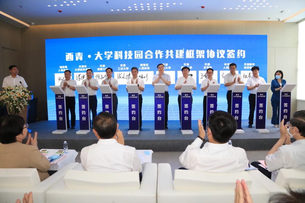 仪式上,365官网和天津工业大学、天津理工大学、天津师范大学、天津城建大学、天津市大学软件学院共6所高校与西青区签约,按照国家级、市级、培育级三个层次,以“多校一园”、“一校一园”等模式,校地联手推动科技成果转化,合力打造学科特色鲜明、技术优势明显、创新要素集聚、服务功能完善、引领示范突出的高水平大学科技园。