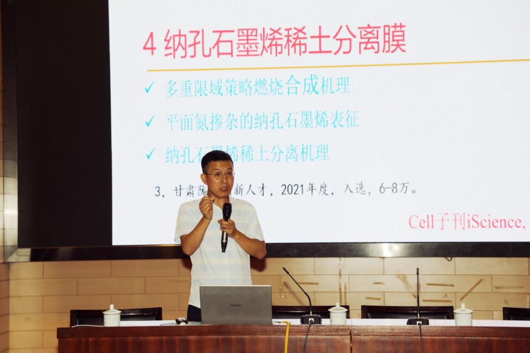 报告会上,李湛研究员从石墨烯的发现过程、石墨烯表面纳米孔的构筑新方法以及目前石墨烯的研究应用等三部分内容出发,详细阐述了多孔石墨烯分离膜的制备方法,结合自己近几年的科研成果,深入介绍了目前石墨烯纳米孔的应用前景。报告结束后,李湛研究员与在场师生就石墨烯领域相关问题进行了探讨和交流。