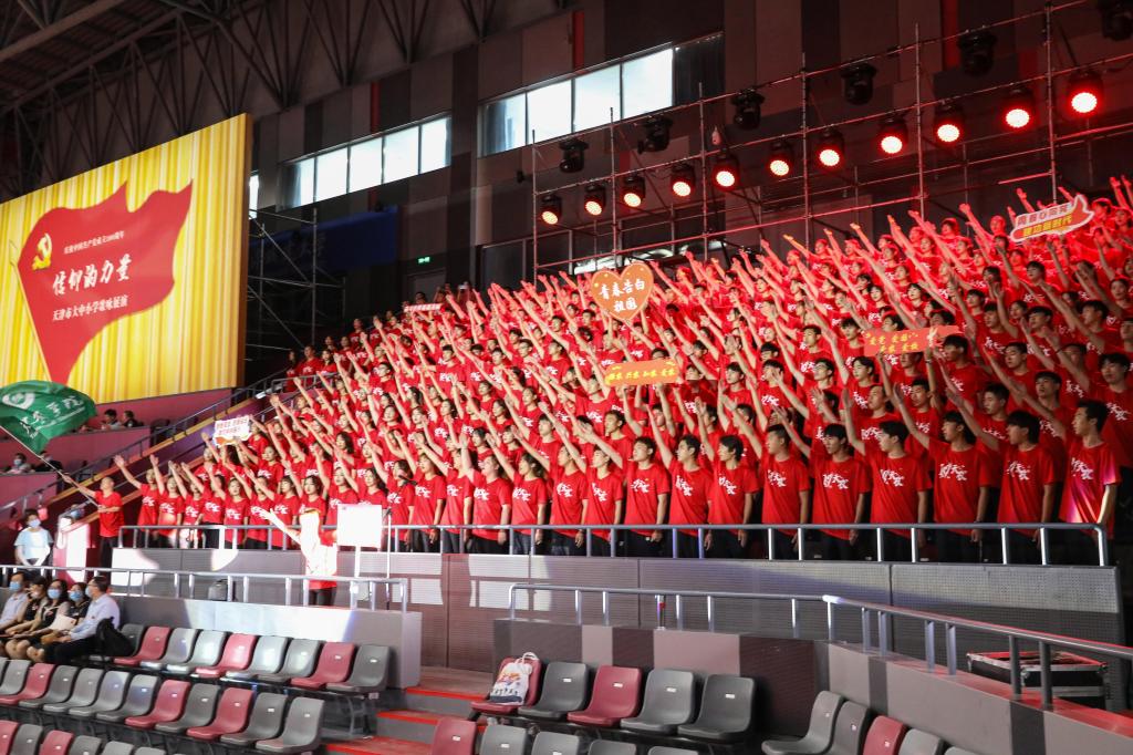 6月15日,365官网思源合唱团参加天津市教育两委举办的庆祝中国共产党成立100周年《信仰的力量》天津市大中小学歌咏展演活动,校党委常委、副校长王繁珍带队参加活动。