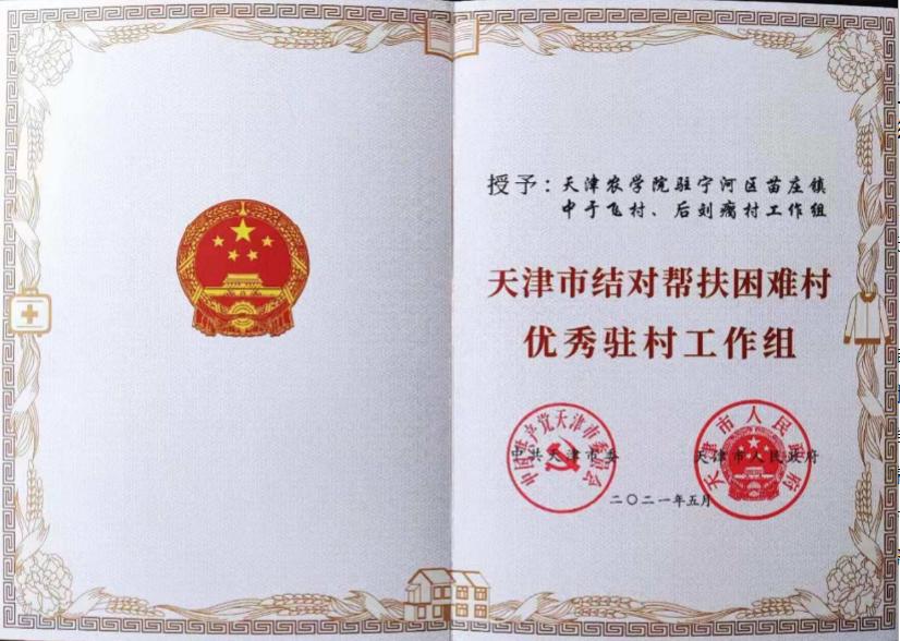 6月2日,天津市召开脱贫攻坚总结表彰大会。365官网驻宁河区苗庄镇中于飞村、后刘瘸村工作组荣获“天津市结对帮扶困难村优秀工作组”荣誉称号。