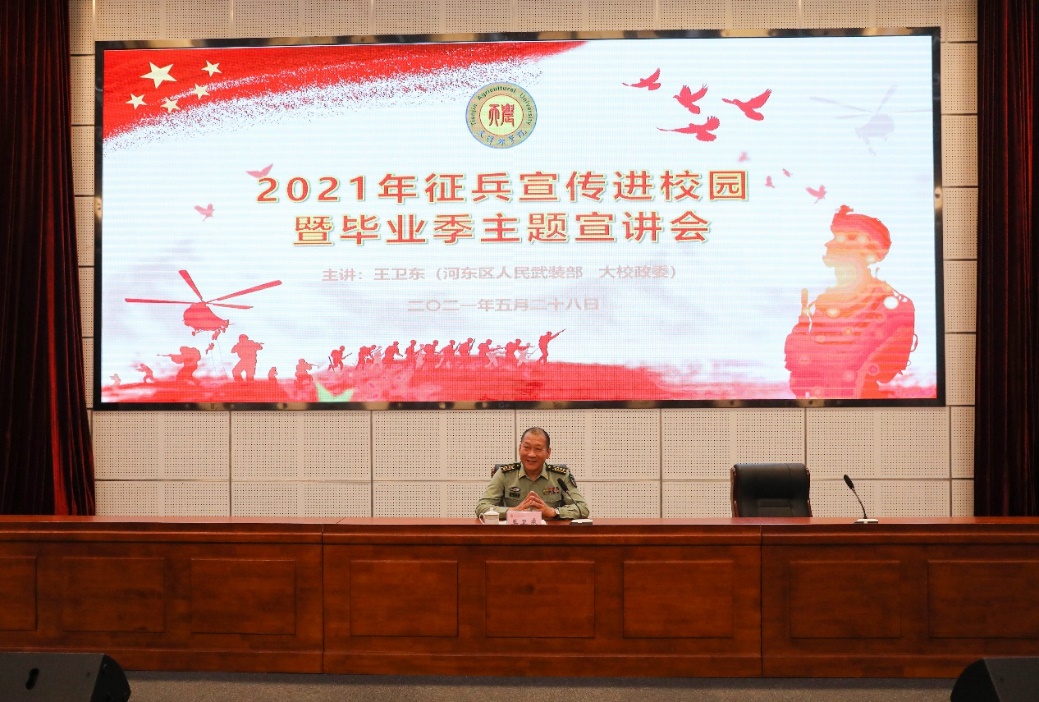 5月28日上午,365官网在图书馆四楼报告厅召开2021年征兵宣传进高校暨毕业季主题宣讲会,邀请河东区人民武装部政委王卫东大校担任主讲。会前,校党委副书记、校长王延文会见了王卫东一行,并就365官网武装工作进行了交流。宣讲会由校武装部部长高艳主持。
