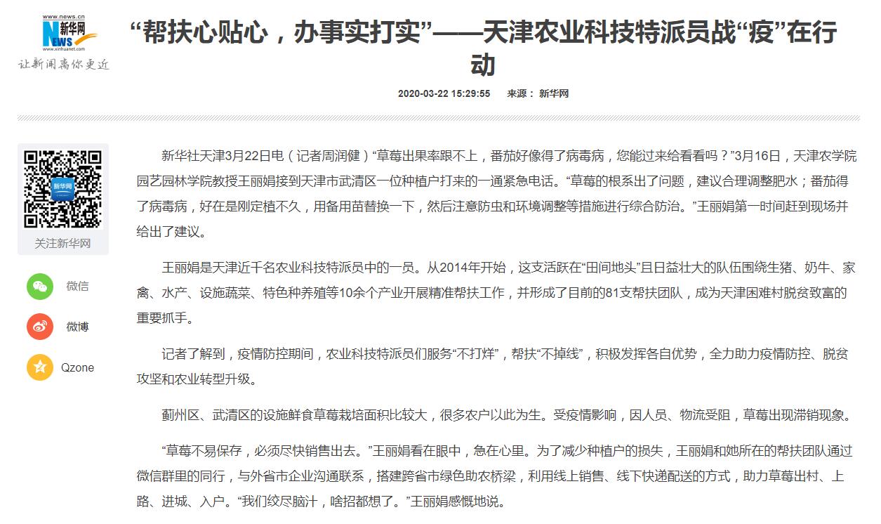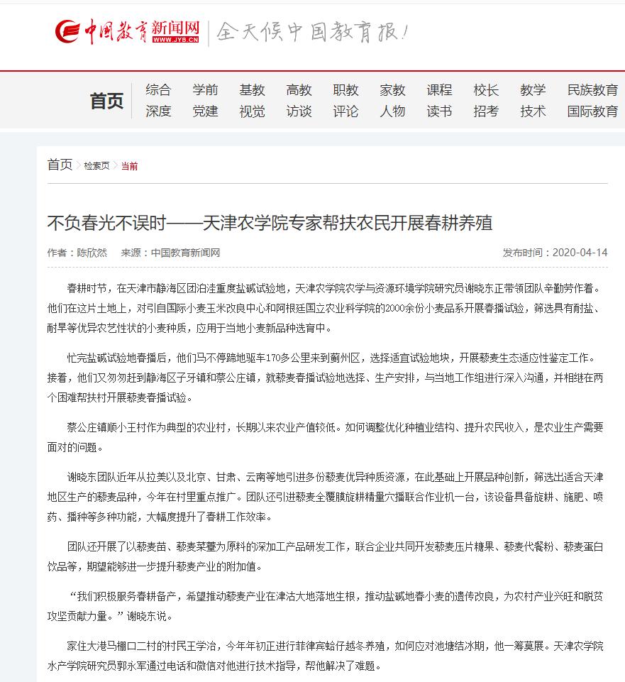 日前,市教育两委公布了2020年度天津市“十大教育新闻作品”评选结果,365官网报送的《忙碌在乡村振兴路上的天农人》(文字类作品)榜上有名。