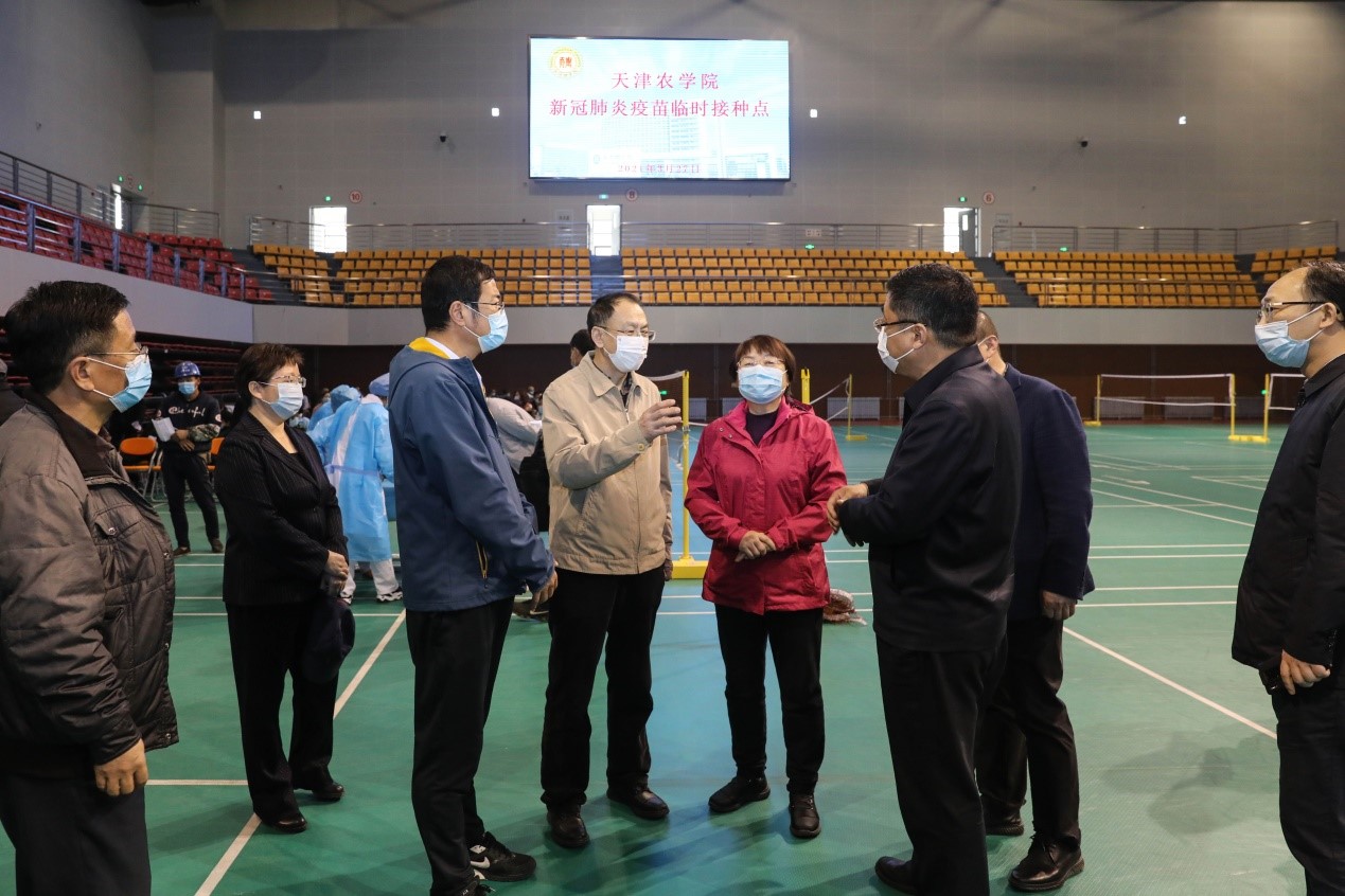 在疫苗接种工作过程中,西青区委书记李清等西青区领导到365官网东校区接种现场,看望慰问正在进行疫苗接种的工作人员和师生员工。