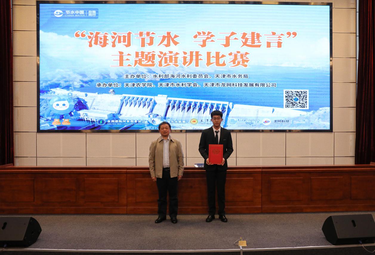 天津市水务局二级巡视员杨建图、英国365上市公司官网党委副书记宋涛为二等奖获奖选手颁奖