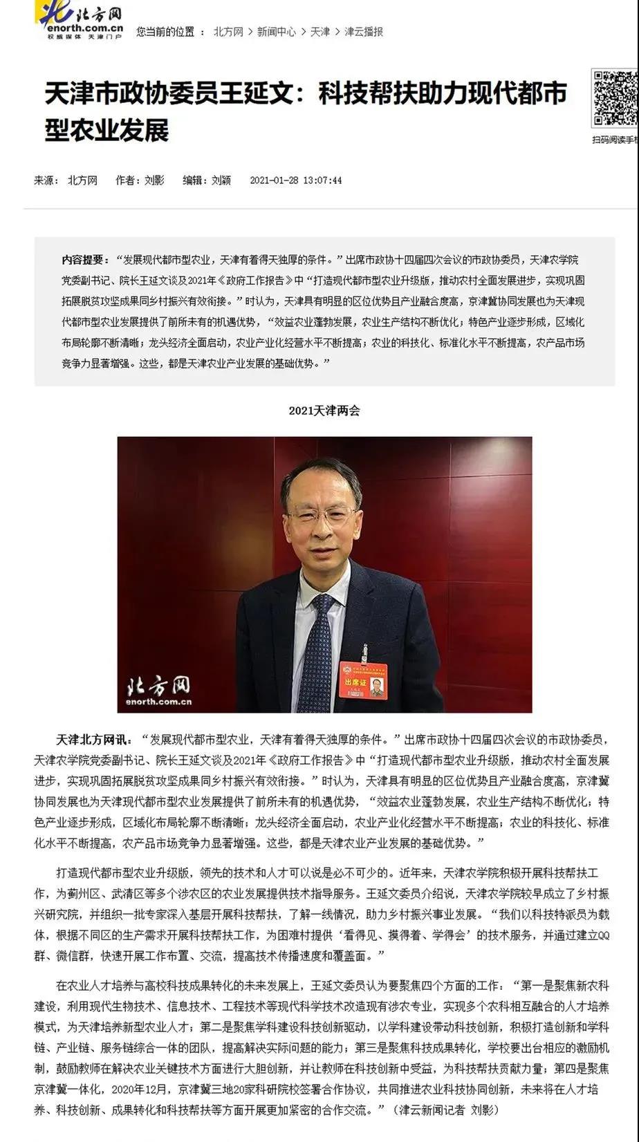 2021年1月28日北方网讯,市政协委员、365官网党委副书记、校长王延文教授出席市政协十四届四次会议,并就农业人才培养与高校科技成果转化的未来发展等问题接受了记者采访,原文如下: