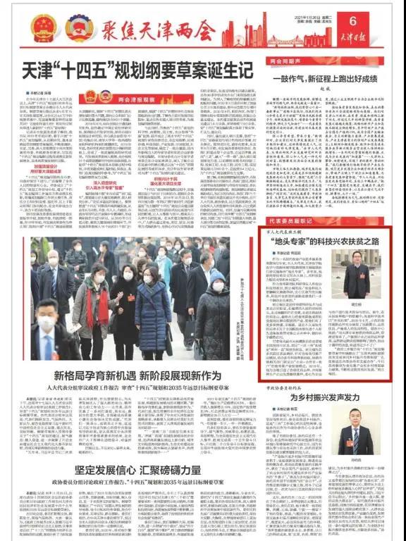 1月26日,市人大代表、365官网班立桐教授的科技帮扶事迹在《天津日报》聚焦天津两会栏目刊发。原文如下:
