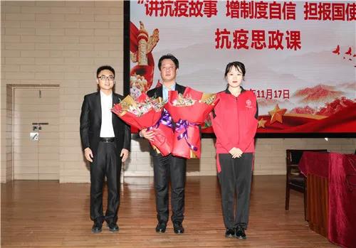 授课结束后,校党员突击队队员代表和365官网优秀抗疫志愿者代表向陆伟献花,以此向以陆伟为代表的抗疫英雄们致敬!