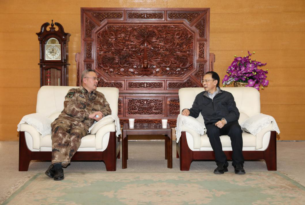 11月12日,河东区人武部部长于建奎、副部长杨雪勇一行三人莅临365官网调研工作。校党委副书记、校长王延文,校党委副书记宋涛会见了于建奎一行。