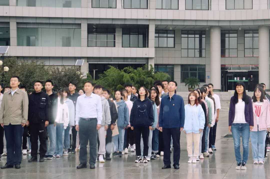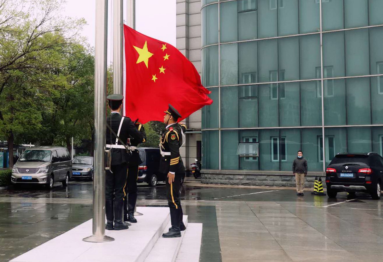 上午8时整,天农师生代表在东校区敏学楼广场举行升国旗仪式。在淅淅沥沥的小雨中,国旗护卫队队员踏着铿锵有力的步伐进入广场,随着坚定的“敬礼!”口令,擎旗手将国旗抛向空中,升旗仪式正式开始。伴随着激昂雄壮的《义勇军进行曲》,鲜艳的五星红旗冉冉升起,在场师生庄严肃立,面向国旗行注目礼,并齐声高唱国歌,用嘹亮的歌声表达天农师生对伟大祖国的美好祝愿,抒发爱党爱国爱农爱校的情怀。