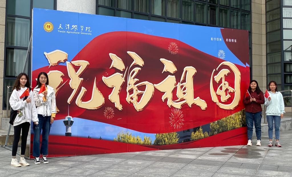 在升国旗仪式后,同学们满心喜悦地与“祝福祖国”展板合影、与国旗合影,并纷纷表示,要秉承“敏学切问、躬勤耕稼”的校训,弘扬“爱岗敬业、艰苦奋斗、团结向上、自强不息”的天农精神,弘扬和践行社会主义核心价值观,以强农兴农为己任,争做知农爱农新型人才。