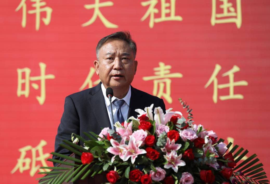 校党委书记孙守钧为新生代表佩戴校徽,并讲授开学第一课。他就伟大抗疫精神与师生分享了三点感悟,一要坚决拥护中国共产党的领导,做到感党恩、听党话、跟党走。要始终坚定拥护中国共产党的领导,始终牢牢坚持党的基本理论、基本路线、基本方略,始终坚持听党话、跟党走;要热爱伟大祖国和人民,积极维护祖国统一和民族团结,传承中华民族优秀传统文化,认真履行个人对祖国、对社会的义务和责任。二要积极践行社会主义核心价值观,让爱国主义成为青春底色。作为中国特色社会主义建设者和接班人,一定要心怀祖国,在学习和生活中积极践行社会主义核心价值观,将爱国情、强国志、报国行融入血脉,树牢中国特色社会主义的共同理想。三要勇担强农兴农使命,“思源”奋进,砥砺前行,厚植“爱党、爱国、爱农、爱校”情怀。树立懂农业、爱农村、爱农民的情怀,努力做知农爱农新型人才;努力践行校风校训、天农精神,为学校事业发展贡献力量。最后,他希望全体新生要大力弘扬伟大抗疫精神,持续做好疫情防控工作;在今后的学习生活中肩负起兴农报国的历史使命,敏学切问、躬勤耕稼,学有所思、学有所成,脚踏实地、一步一个脚印将论文写在中国大地上;不负青春、不负韶华、不负时代,做坚定跟党走、奋进新时代的天农学子。