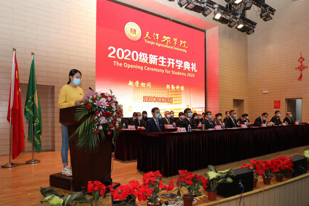 全体2020级新生进行入学宣誓,誓以谨记天农校训,秉承天农精神,爱党、爱国、爱农、爱校,决心为实现中华民族伟大复兴的中国梦而努力奋斗。