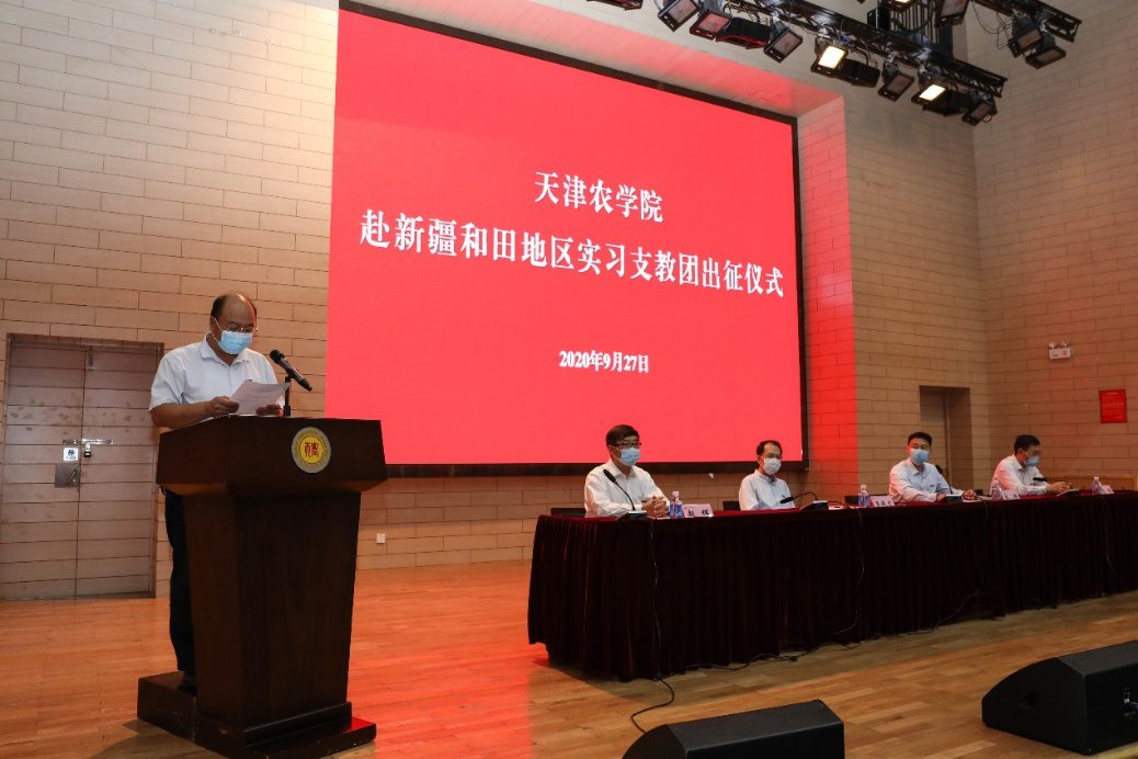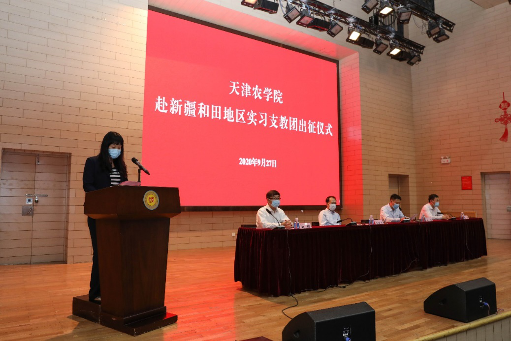 王延文在讲话中表示,学校会时刻关注着实习支教团的同学们,为同学们提供必要的帮助和支持,并向即将出征的实习支教团师生提出四点希望和要求:一是不忘初心、勇担重任,将习近平总书记对青年的希望与嘱托转化为坚决完成支教任务的不竭动力源泉,以高质量的支教成效向建党100周年献礼;二是牢记使命、锻炼成才,既要胸怀梦想,又要脚踏实地,以实习支教为契机锻造受益一生的优秀品质;三是砥砺前行、敬业奉献,让青春之花绽放在祖国最需要的地方,在实现中国梦的实践中书写精彩人生;四是不辱使命、载誉而归,牢记天农精神,践行天农校训,在奉献边疆的神圣岗位上挥洒天农人的热血青春。