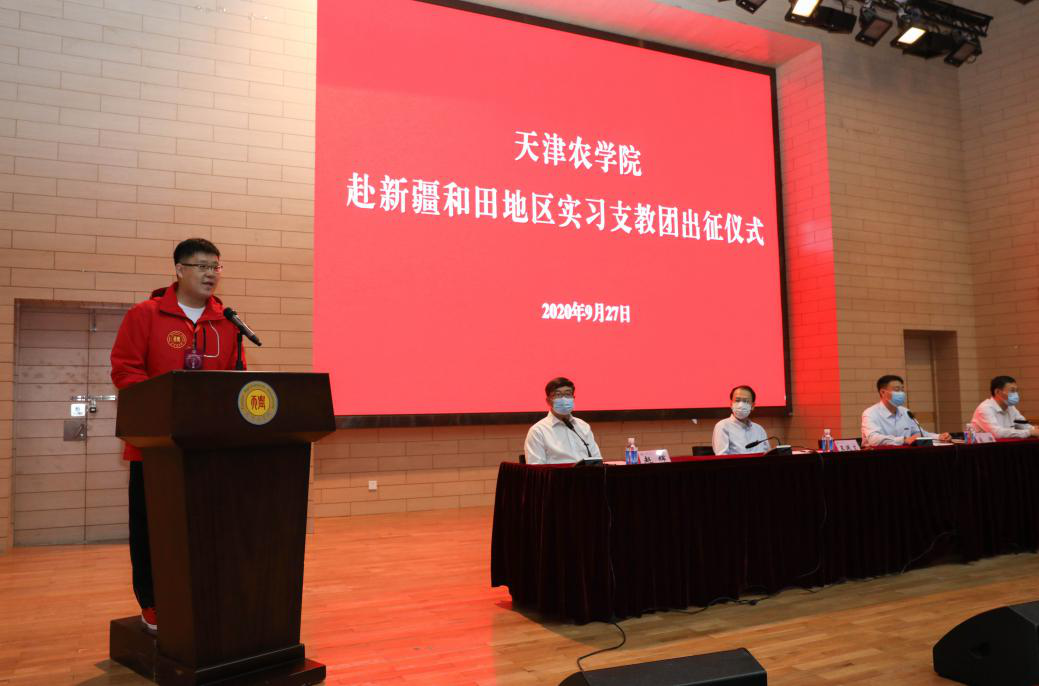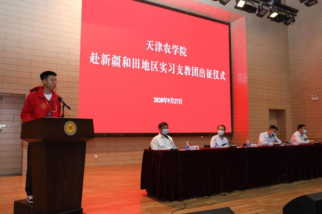 “‘思源’奋进,不负韶华;奉献边疆,圆梦和田”,全体师生铿锵的誓言将出征仪式的热烈气氛推向高潮,坚定回应了祖国对青年的需要与天农青年对祖国的担当,承载了他们圆满完成支教任务的决心。
