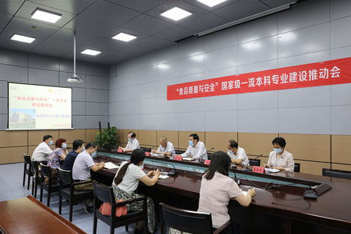 食品科学与生物工程学院党委书记、一流专业建设负责人刘金福对进一步推进“食品质量与安全”一流专业建设思路进行介绍。食品科学与生物工程学院副院长闫师杰对“食品质量与安全”一流专业建设工作及下一阶段工作计划作了说明。教务处处长金天明表示,要以一流专业建设为契机,进一步拓展产学研基地建设,加强专业认证工作,打造课程思政示范专业。