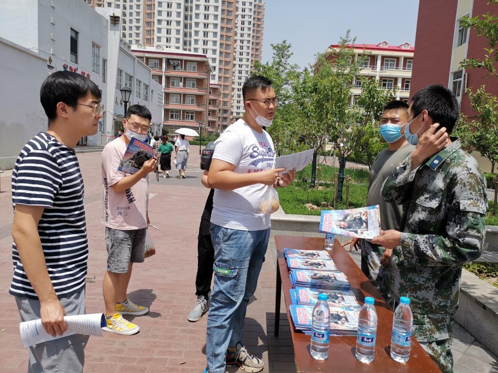 在宣传活动现场设置了征兵宣传展板,西青区征兵办工作人员为前来咨询的同学讲解了2020年天津市征兵工作相关政策,对参军时间安排、入伍条件、入伍应征程序、服役待遇、退伍补偿等内容作了详细介绍。重点解读了2020年天津市征兵政策变化,并鼓励学生把爱国之心化为报国之行,树立起携笔从戎、建功军营、报效祖国的成才之志。现场向同学们发放了征兵宣传单。活动现场同学们积极踊跃报名,截止6月4日已经有40余名同学报名成功。