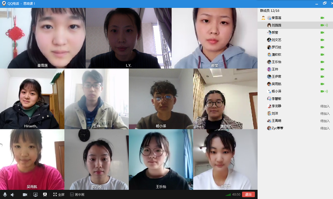 为能达到课程收听收看的更好效果,全体思想政治理论课教师、各二级学院分管学生工作的院领导、辅导员、班主任带头学习、及时学习,并通过微信群、QQ群进行集中研讨,总结疫情防控时期提升思想政治工作实效性的有效方法。各班级组织同学们采取线上分散学习与集中学习相结合方式进行,并以云班会等形式进行深入交流,深化对相关内容的认识。各学生党支部、团支部组织党团骨干、学生会、社团骨干通过云党(团)日活动形式在线交流学习心得,巩固学习成效。