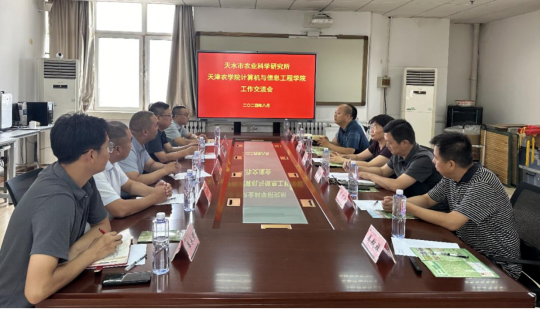 8月14日,天水市农业科学研究所党委书记、所长史延春,副所长张忠平,办公室主任周丰,绿色农业研究中心主任康继平一行到访计算机与信息工程学院,进行交流洽谈。此次访问旨在探讨双方在农业科研、人才培养以及智慧种植等方面的合作潜力,共同推动农业数字化转型。