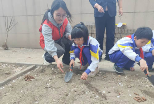 传承五四精神,加强团队共建。4月上旬,人文学院党委与闽侯路小学党总支签订劳动教育协同育人共建协议书,双方强调将通过“以团带队”等形式多领域开展深度合作,感悟思源文化,加强劳动意识。4月12日,人文学院团委助力闽侯路小学少先队开展“小金鹰百草园”劳动实践基地揭牌仪式活动。团员青年通过前期准备学习,在现场帮助少先队员们种植药材,讲解了简单的种植要领,期间还给少先队员们讲述了 《神农尝百草》《悯农》等传统小故事和古诗,教育引导小朋友们要加强劳动意识,珍惜一粥一饭,节约粮食。