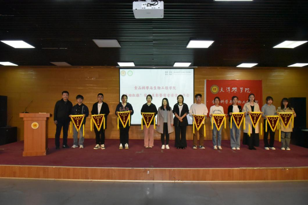 随后,参会教师向10间优秀宿舍授予“流动红旗”旗帜,向10位优秀宿舍长颁发荣誉证书,并为获得荣誉称号的宿舍代表发放生活用品作为鼓励。优秀宿舍长代表2021级食品科学与工程专业翟莫冉、2022级生物工程专业袁荣鑫分别向给予他们殷切关怀的老师表示了感谢,结合自己在宿舍长岗位上做好宿舍文化建设、物品收纳、作息管理、关系维护等方面的具体措施进行了经验分享,并表示将以此次获奖为契机,发挥模范带头作用,带动更多的宿舍成为“流动红旗”宿舍。全体宿舍长还一起观看了宿舍安全警示片。