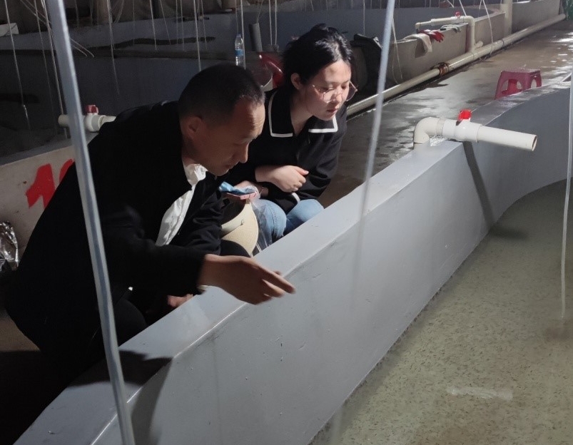 随后,双方赴365官网产学研联合体、松江鲈驯养繁育示范基地——天津市晟淼水产养殖有限公司,参观了松江鲈繁育车间、工厂化循环水养殖车间等,对松江鲈生长发育情况进行测量分析;针对松江鲈受精卵孵化率低问题进行探讨;对松江鲈苗种繁育过程中生物饵料的培养、饵料的转换、育苗池清理、水质调控等技术进行指导,分析了后期松江鲈养殖注意事项,并将采集完的实验样品带回学校进行进一步分析研究。