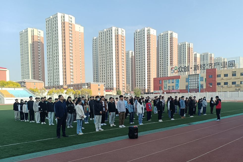 升旗仪式于4月24日7时20分准时开始。鲜艳的五星红旗在金色的朝阳中冉冉升起,师生共行注目礼,共同唱响国歌,传递了浓浓的爱国情和坚定的报国志。