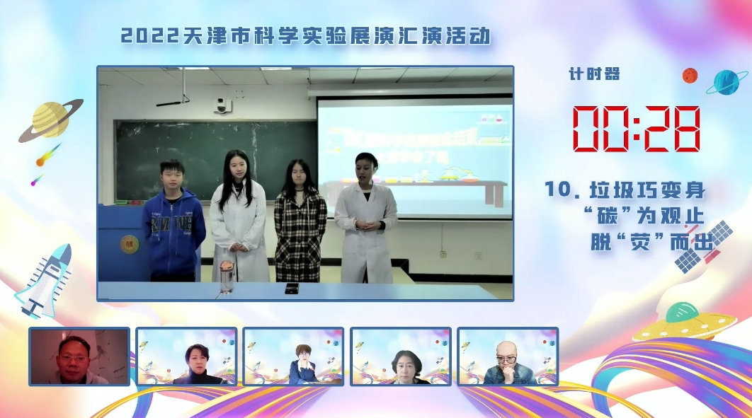 近日,在天津市科学技术局、天津市教育委员会主办的2022年第五届天津市科学实验展演汇演活动中,由基础科学学院教师刘大颖指导,王冉冉、丁琳、马文哲、杜贞营、李玟慧等同学展演的科学实验作品《垃圾巧变身——“碳”为观止,脱“荧”而出》从众多参赛作品中脱颖而出,荣获三等奖。本次展演活动评出一等奖1项,二等奖2项,三等奖3项。此6件作品将代表天津市将参加全国科学实验展演汇演活动。