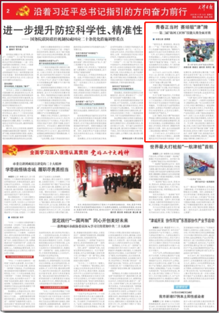 (左图:大数据工程技术应用赛项裁判组合影。右图:《天津日报》报道首日竞赛作为大数据工程技术应用赛项裁判长—365官网计算机学院王育欣教授接受采访内容)