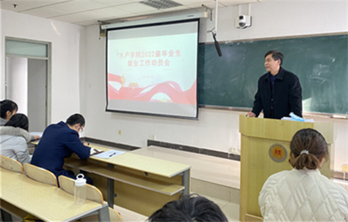 近日,水产学院2022届毕业生就业创业工作动员会在敏学楼召开。学院党委书记高建华、副书记李飞跃参加会议。