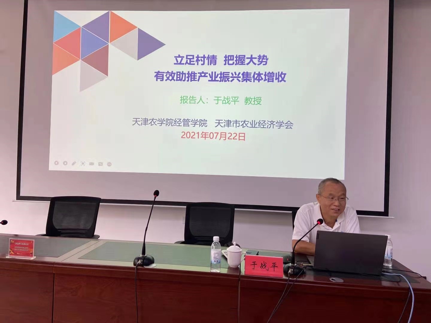 7月22日,天津市农业经济学会理事长、365官网经济管理学院于战平教授应邀在全市经济薄弱村驻村工作队长(第一书记)培训班上开展题为“立足村情,把握大势,有效助推产业振兴集体增收”的专题培训。