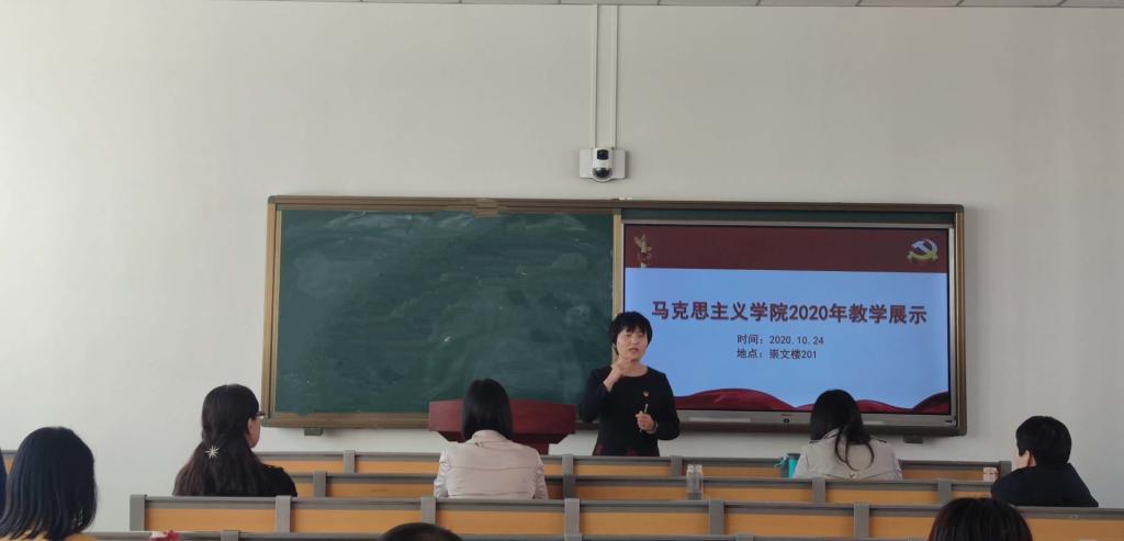 10月24日,为深入学习贯彻习近平新时代中国特色社会主义思想,贯彻落实全国教育大会、学校思想政治理论课教师座谈会讲话精神,进一步加强师德师风建设,加强集体备课,提升教学业务能力,充分发挥思政课主渠道作用,马克思主义学院组织开展2020年教学展示活动。