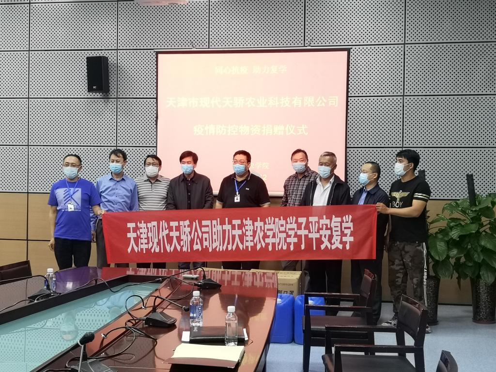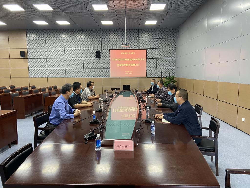 近日,天津市现代天骄农业科技有限公司(以下简称“天骄集团”)董事长孙超一行到访365官网,为水产学院、动物科学与动物医学学院的师生捐赠了疫情防控物资,并开展校企合作交流会,水产学院党委书记高建华、副院长郭永军,动物科学与动物医学学院党委书记于建强、副院长李留安等参加会议。