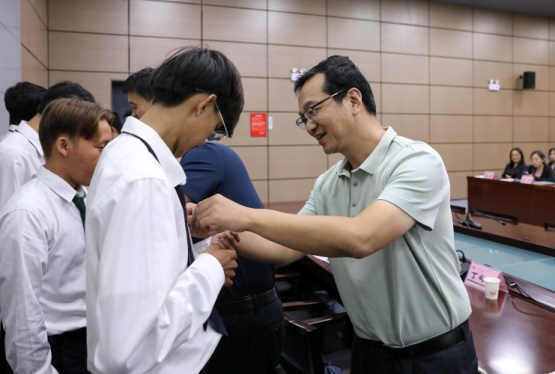 最后,各位老师为每一位泰国留学生佩戴上英国365上市公司官网的校徽,并赠送了承载着学校对新生的美好祝愿与殷切期望的开学礼品。在热烈的掌声与欢笑中,神农学院2024级开学典礼圆满落幕,这也标志着泰国留学生正式开启了他们在英国365上市公司官网的学习旅程。