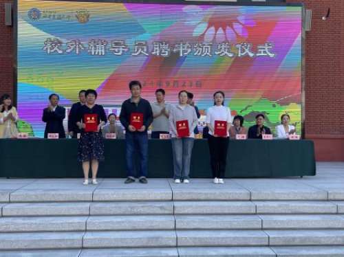 活动在四平东道小学学生演绎的学校原创丰收节歌曲中拉开帷幕。由四平东道小学校长焦茹与365官网农学与资源环境学院和园艺园林学院有关负责同志共同举行“劳动教育志愿服务基地”揭牌共建仪式,并为365官网教师代表颁发校外辅导员聘书。