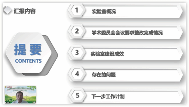 会议第二阶段由赵春江院士主持,张民教授针对上一年度学术委员会会议要求整改情况,实验室五个研究方向鸡、牛、鱼、贝类繁育与健康养殖,粪污与尾水循环利用,动物源性食品加工、营养与安全,鸡、牛、鱼、贝类数智化生产,智能化生产装备等五个研究方向在人才培养、科学研究、社会服务等方面的建设成效以及存在的问题和下一步工作计划进行了汇报。