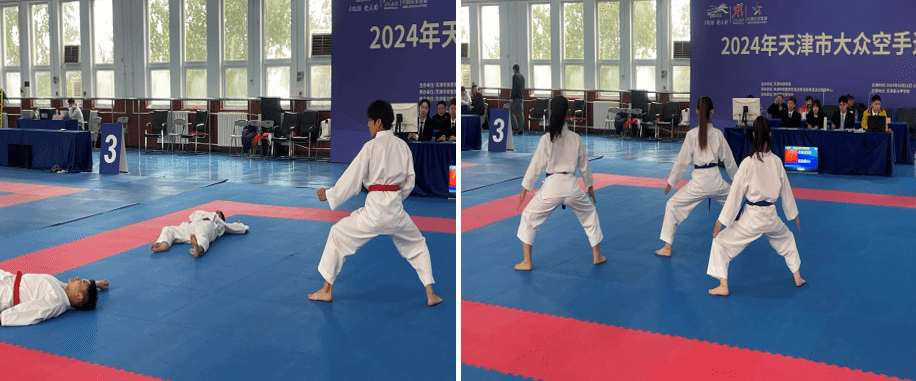 近日,天津市第二届空手道超级联赛(第二站)暨天津市大众空手道比赛大学生组在天津市西青区精武镇霍元甲文武学校举行。由体育教学部李学刚、张秀丽两位老师带领的365官网空手道队在团体型、个人型和个人组手、团体组手项目中展开激烈角逐,最终以优异成绩名列团体总分第一名,斩获17枚金牌、10枚银牌、5枚铜牌,共获得前八名奖项38项,并荣获体育道德风尚奖。