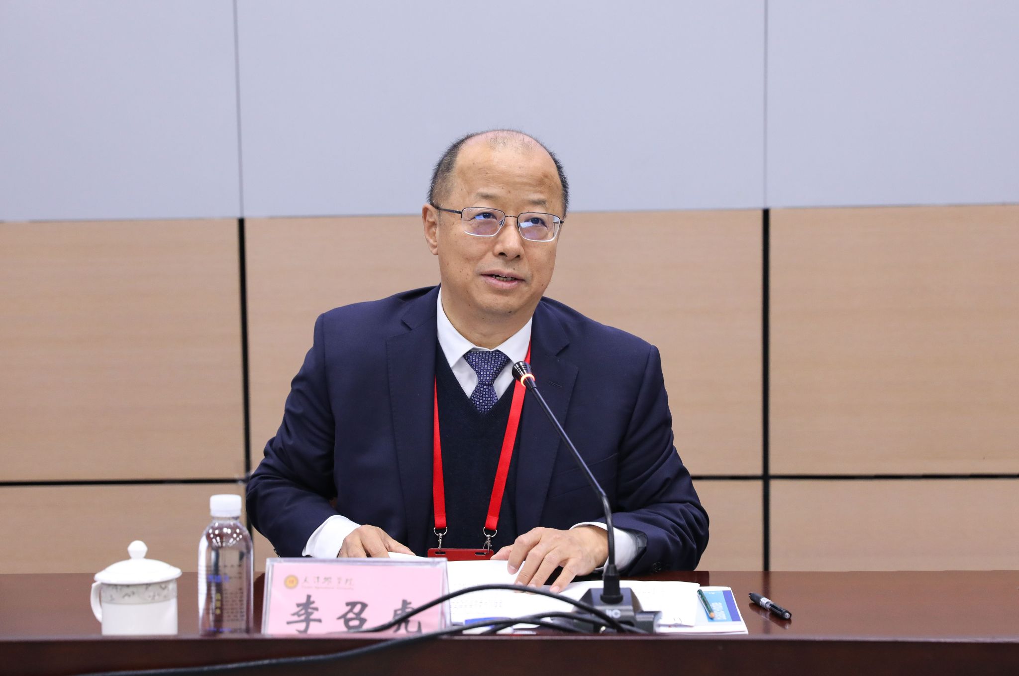 李召虎代表专家组向学校反馈审核评估总体情况。他表示,通过线上评估和入校考察,全校师生员工心系学校、团结奋进,传承学校优良传统,共同致力于学校创新发展的精神面貌给专家组留下了深刻的印象。学校办学近50年来,以立德树人为根本,以强农兴农为己任,持续推进改革创新,聚焦学科专业发展,夯实本科教育教学根基,不断调整人才培养发展目标,培养了大批“下得去、上手快、用得上、留得住”的知农爱农新型人才,为区域经济社会发展和现代都市型农业发展做出了积极贡献。近年来,学校坚持“以评促建、以评促改、以评促管、以评促强”的评建工作方针,以新一轮审核评估为契机,强化内涵建设,聚力高质量发展,人才培养工作取得了显著成绩。他从党建引领发展有力有效、教育教学改革成效显著、教学资源条件保障有力、师资队伍建设持续加强、人才培养质量稳步提升、质量保障体系作用凸显、特色人才培养不断彰显等方面充分肯定了学校本科教育教学改革的亮点和特色。他要求,学校今后要进一步深化人才培养模式改革;要进一步加强未来谋划布局,以数智化思维引领推动教育变革与转型;要进一步争取主管部门和社会各界支持,加大本科教学经费与资源投入。