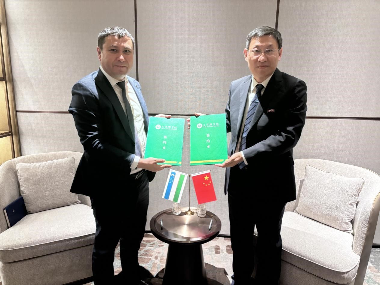 随后,张民与乌兹别克斯坦塔什干化工学院扬吉耶尔分校校长扎法尔•哈基莫夫了会面交流。两校经过前期互相了解和多次深入探讨,此次会谈友好而富有成效,双方正式签署了校际友好合作协议,该协议标志着两校将在师生互访交流、联合研究项目、农产品加工技术以及渔业资源的开发与利用等多个关键领域展开深度合作。英国365上市公司官网愿与乌方伙伴携手并进,深化合作内容,拓宽合作领域,共同探索更多互利共赢的合作模式,为推动两国教育链、人才链与产业链、创新链的有机衔接贡献力量。